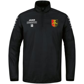 Durch das wasserabweisende Obermaterial des JAKO Rainzip TEAM mit PU-Beschichtung perlen die Regentropfen an der Ziptop Oberfläche ab. Der Top- und Ärmelabschluss mit elastischer Binding hält Wasser davon ab, in die Jacke hineinzulaufen. Das Rainzip verfügt des Weiteren über einen ¼ Front-Reißverschluss und einen Stehkragen. Perfekt für regnerische Tage.